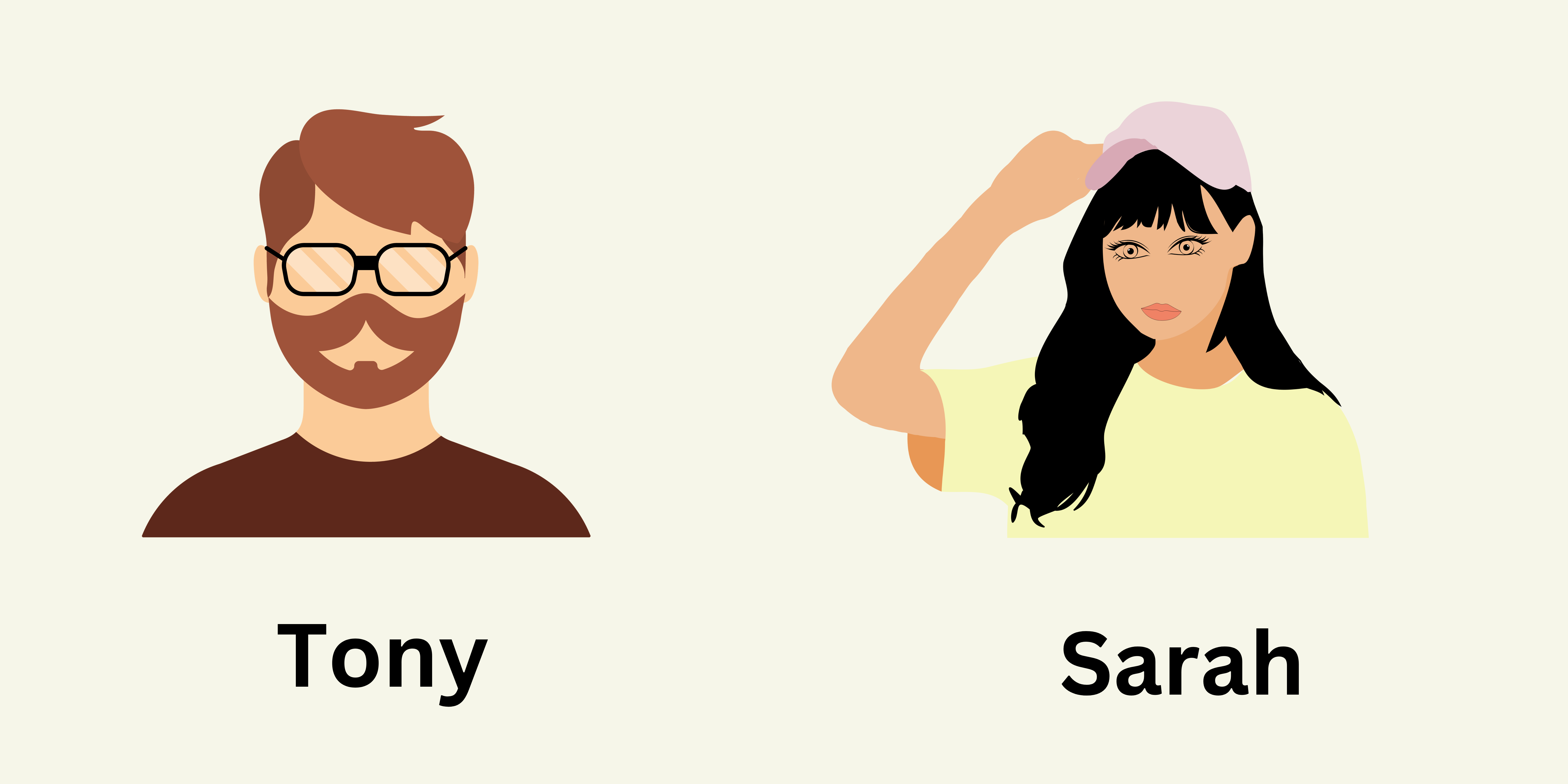 For Tony, I remember Tony Stark (Ironman). So I would remember his glasses as a high tech glasses developed by Stark. For Sarah, I remember Sahara. So I would imagine her big eyelashes as camel's eyelashes.